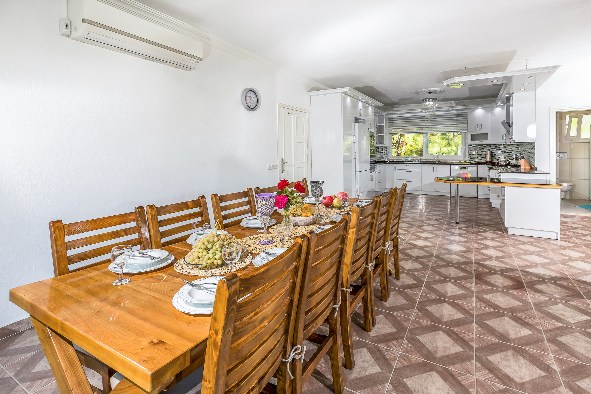 Villada kullanılan bütün beyaz eşyalar ve mobilyalar lüks ve kalitelidir. Misafirlerin ihtiyaçları tamamen düşünülerek, tüm detaylar en ince ayrıntısına kadar villa içerisinde bulundurulmaktadır. Salonunda 2 adet klima mevcuttur. Villanın arka kısmında bulunan geniş arazide villaya ait olduğundan dolayı çocuklu ailelerimiz için çok uygun bir seçenek olacaktır.